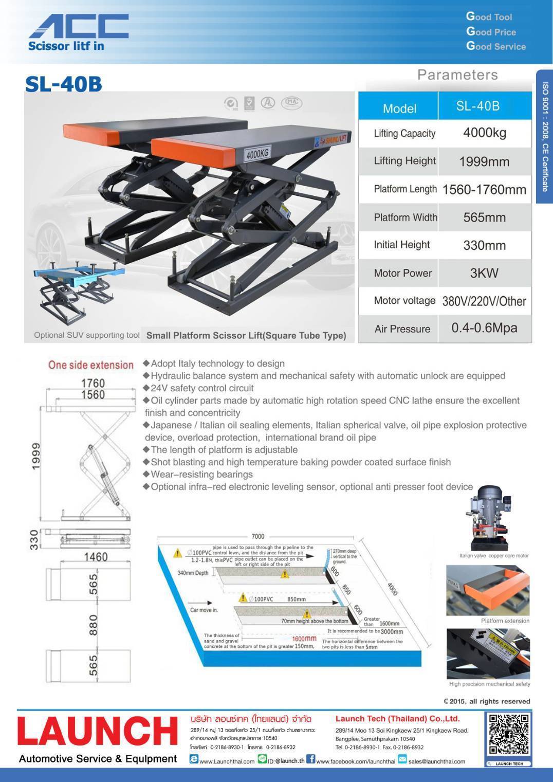 ลิฟท์กรรไกร ลิฟท์เอ็กซ์ แบบฝังพื้น สำหรับงานซ่อมช่วงล่าง รุ่น SL-4.0 B
