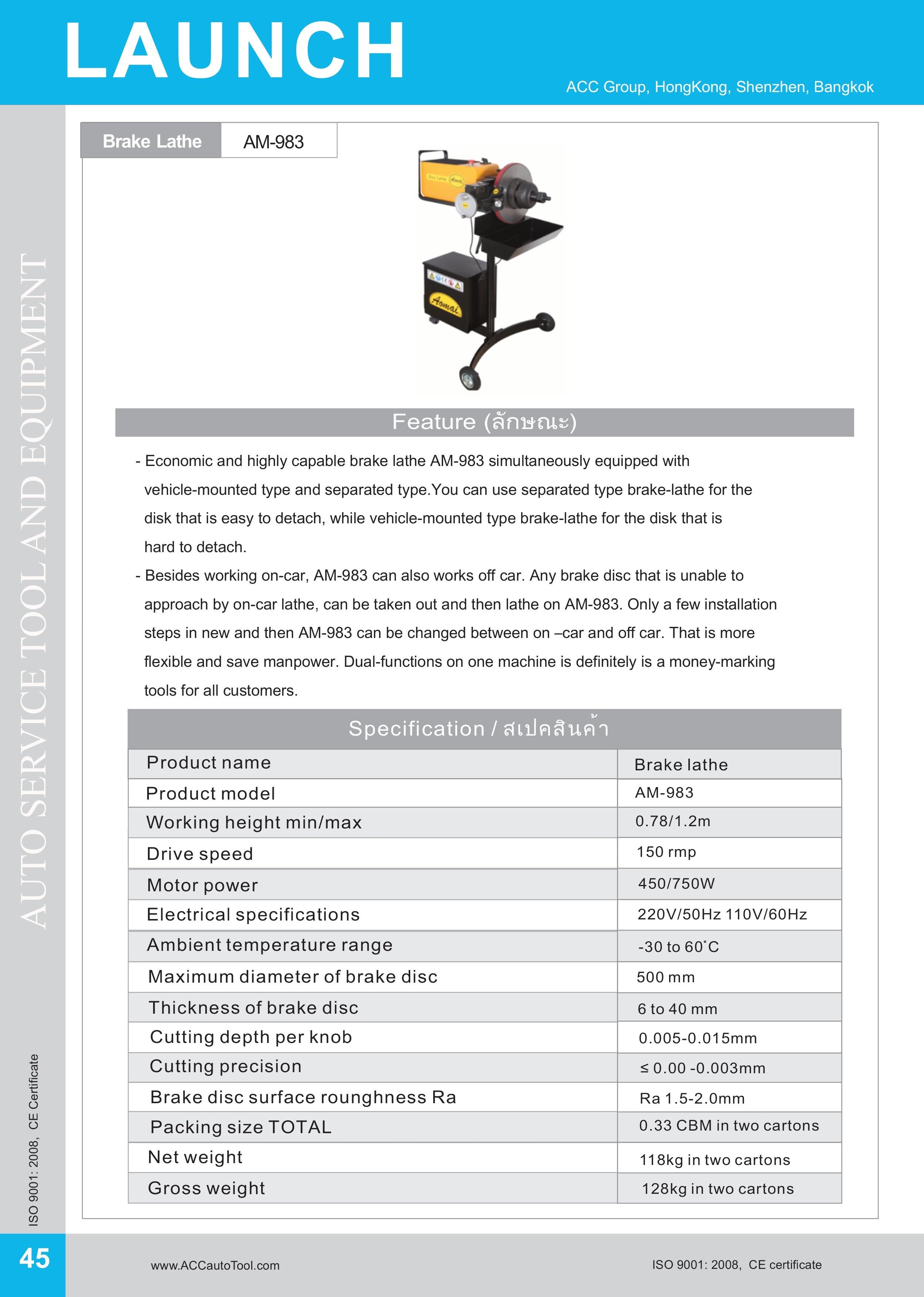 Feature (ลักษณะ) - Economic and highly capable brake lathe AM-983 simultaneously equipped with vehicle-mounted type and separated type.You can use... อ่านเพิ่มเติม